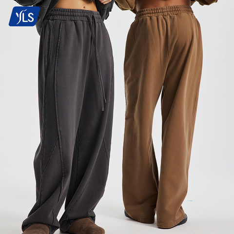YLS4052 سروال رياضي للرجال واسع الساق فضفاض على شكل شارع عالي الجودة بنطال سبلينج بنطال ملابس شارع للرجال بحواف خام وبحواف حمضية