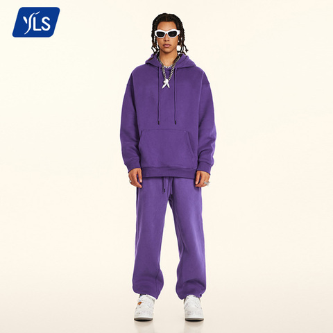 YLS-ropa de calle informal para hombre, 400 GSM, 100 algodón, sudadera, pantalón, chándal, Conjunto personalizado, 2 piezas