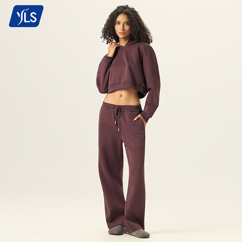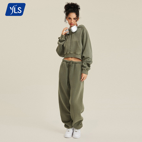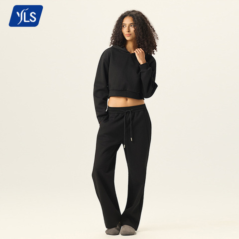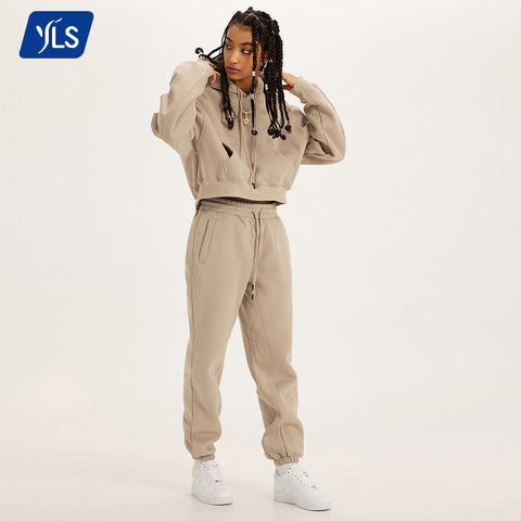 YLSD063 350GSM Algodón Poly Fleece Traje deportivo de dos piezas Jersey y pantalones de otoño-invierno para mujer Sudadera a juego