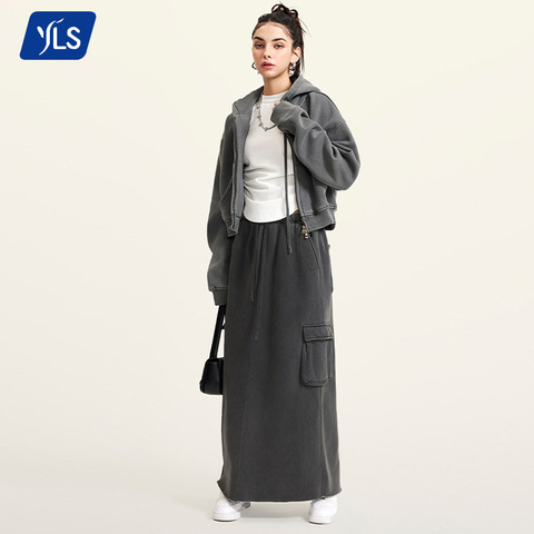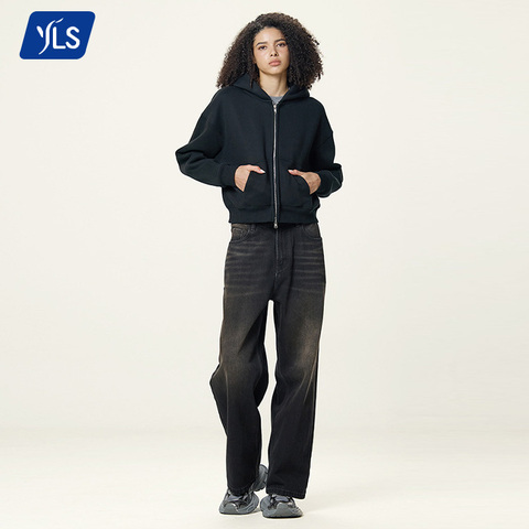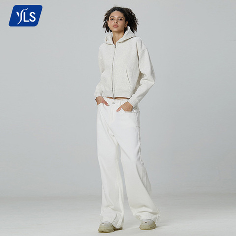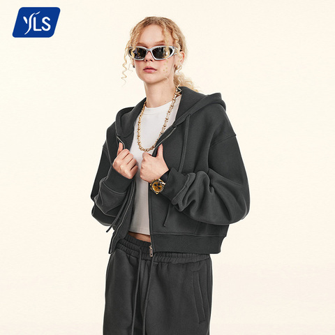 YLSD058 345GSM Cotton Poly Fleece Zip up Crop Hoodie Mujer Invierno Europa y América Heavyweight Y2K Boxy Fit Hoodie