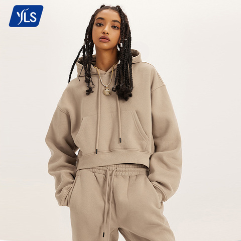 YLSD057 345 Gramos Fleece Cotton Poly Cropped Hoodie Venta al por mayor Pullover Hoodies para mujeres
